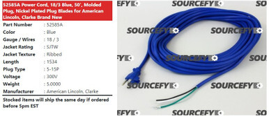 Clark POWER CORD, 18/3 50' BLUE 52585A