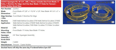 TENNANT-CASTEX NOBLES URETHANE SQUEEGEE KIT 222433